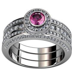 Här har vi tagit fram en ring med stor bling effekt, massor med små briljantslipade diamanter. Du börjar med mittenringen och sen kan du komplettera med sidoringarna. Mittstenen går att få med en briljantslipad diamant i mitten eller i en mängd olika färger – vi tar fram förslag.