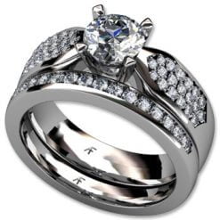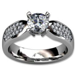 Ring i 18 k vitguld med centersten som väger 0.73 ct samt pavé infattade små briljantslipade diamanter som tillsammans väger 0.34 ct. Går även att få i rött guld eller platina.