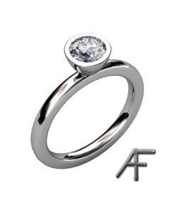 Dels går det göra olika former av fattningar för en solitär diamant. Bilden visar den med en mjukt svagt välvd chanerinfattning.