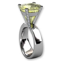 Ädelsten som är slipad likt en glass strut, med ca måtten: 13 x 13 mm. Här har jag formgivit en ring för dig som vill ha en cocktailring som ”sticker ut”. Stenens ovansida saknar den bordsfasett som ofta ädelstenar har. Här har vi istället en mängd små fasetter och en sten med låg överdel.