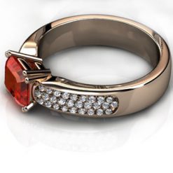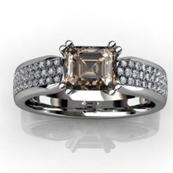 Modellen designad Anders Fors där de pavé infattade briljantslipade diamanterna skapar en fin kontrast mot mittstenen. Vi kan ta fram ett stort urval av olika centerstenar i olika färger. Bilderna visar svagt Coffeyfärgad diamant samt Orange/gul Citrin.