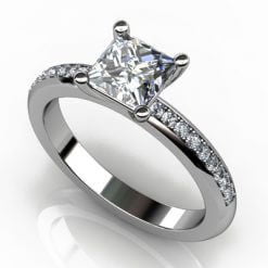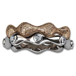 8 st Chanerinfattade briljanter i placerade på vågtopparna. De briljantslipade diamanterna väger tillsammans ca 0.24 ct (tw, vs). Ringens största bredd ca 3,9 mm och högsta höjd ca 2,5 mm.
