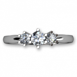 Trestensring i klassisk stil med 1 st briljantslipad diamant som väger 0.20 ct som flankeras av 0.10 ct på vardera sida. Vi tillverkar denna ring i röttguld, vittguld samt även i platina.